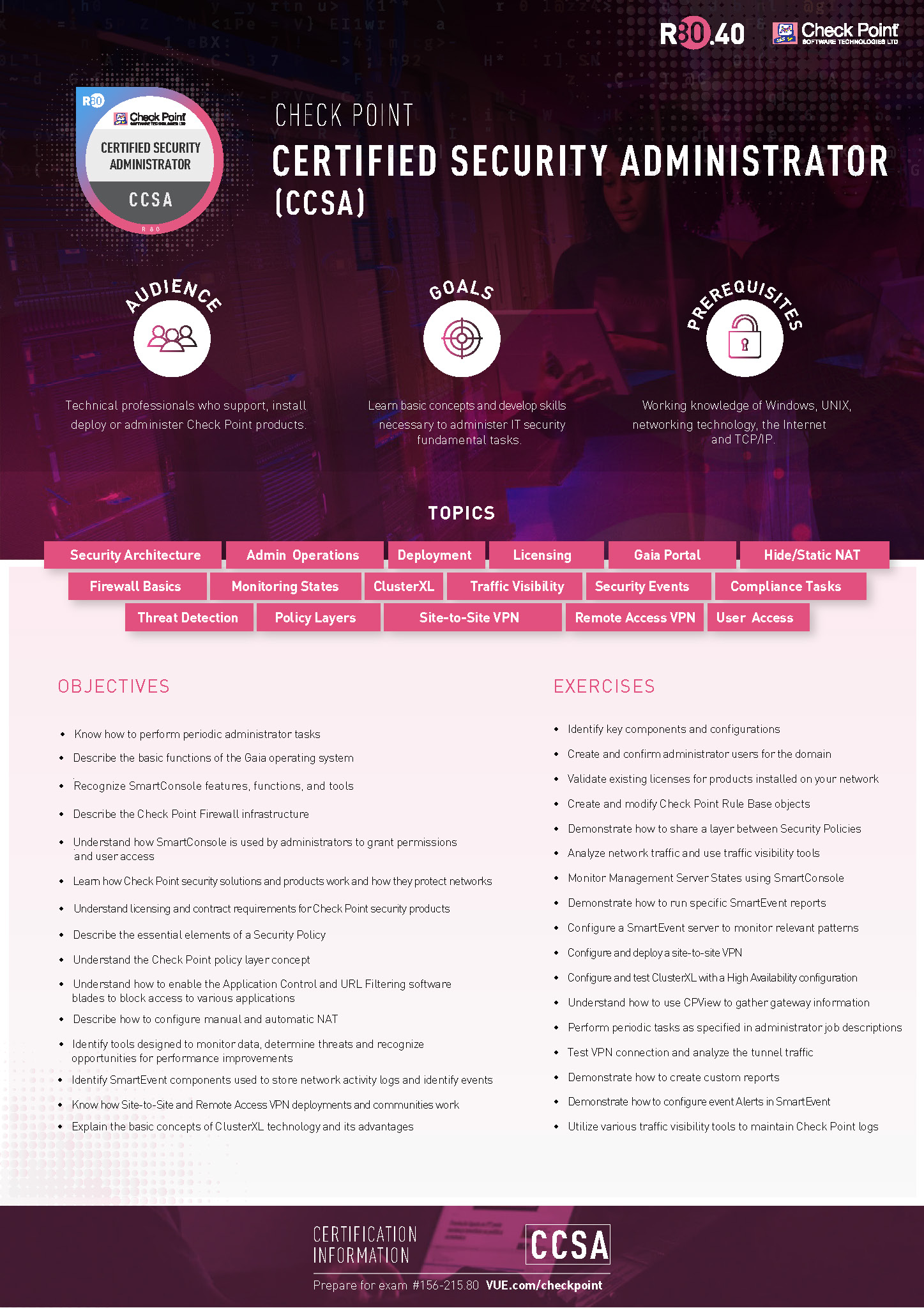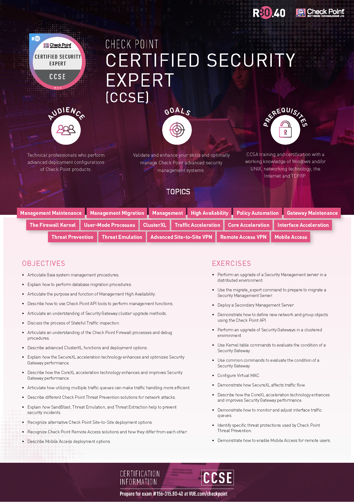 Starting on 01.02.2021, Check Point has officially updated the Check Point Certified Security Administrator and Check Point Certified Security Expert courses to version R80.40.